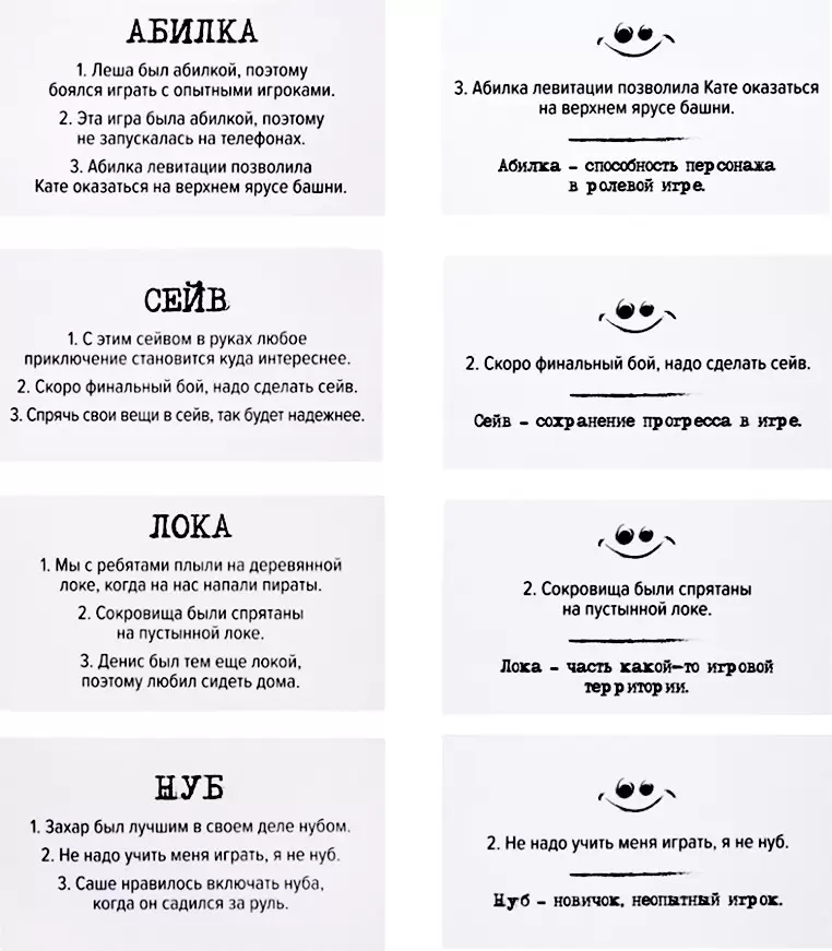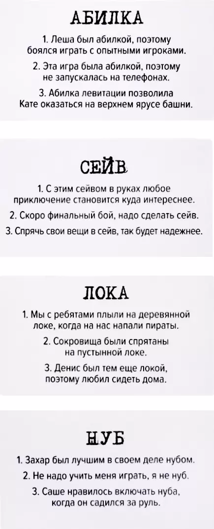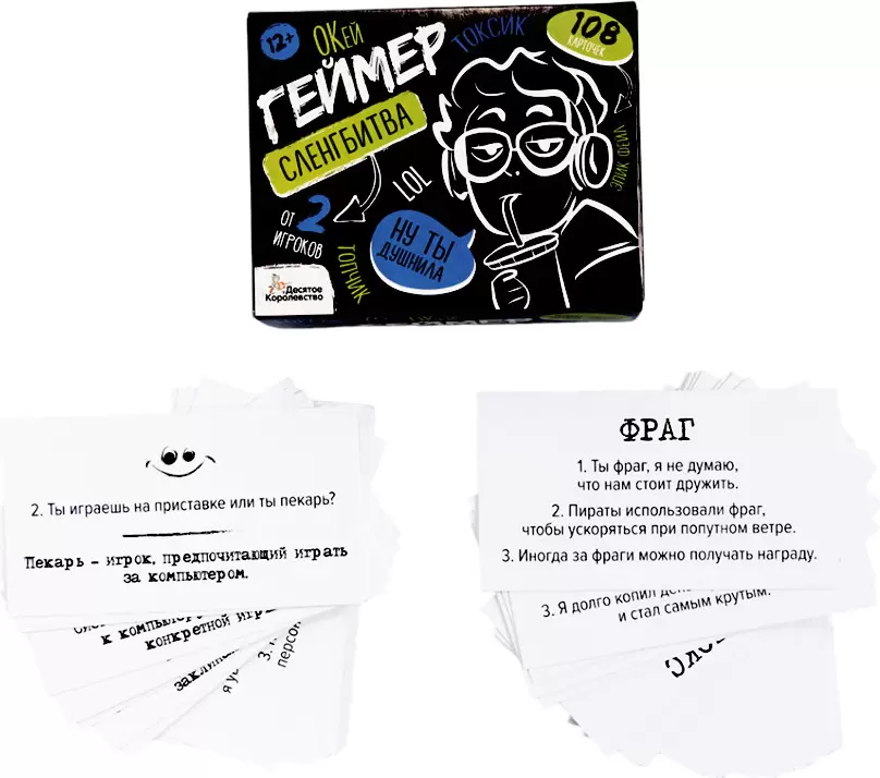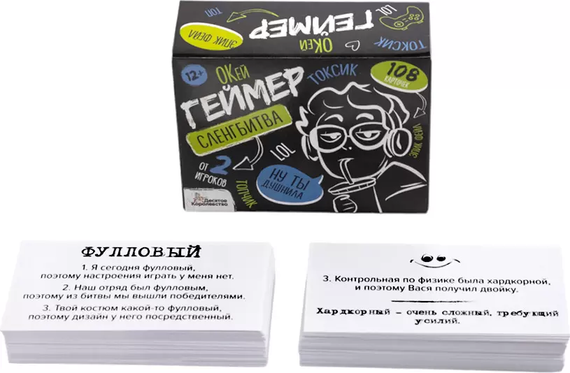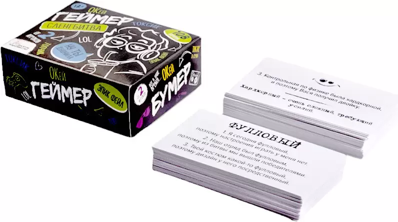 С настольной игрой для большой компании «Сленгбитва. Окей Геймер» вы проверите уровень знания сленга геймеров. Игрокам нужно отвечать на вопросы: что такое лока и спелл ? и кто такие нуб и багоюзер ? Победит тот, кто даст больше правильных ответов!