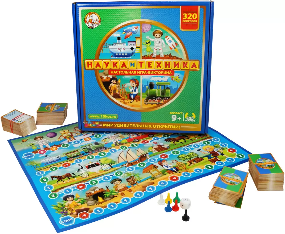 Настольная игра-викторина «Наука и техника» — эволюция удивительных открытий человечества.В этой увлекательной интеллектуальной игре участникам предстоит благодаря своим знаниям превратиться из пещерных людей в изобретателей компьютеров и покорителей космоса. Докажите, что вы истинные носители современной цивилизации, а не дикари, случайно затесавшиеся в ее ряды.Игра рассчитана на 2-6 участников и предназначена для любознательных детей и взрослых.
