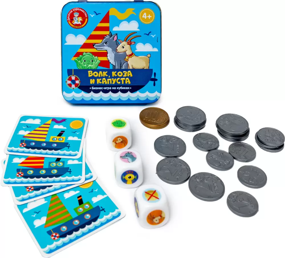 Помните загадку, в которой нужно перевести в лодке волка, козу и капусту таким образом, чтобы волк не съел козу, а коза не съела капусту? Давайте усложним задачу и добавим в неё охотника и инопланетянина. Настольная бизнес-игра «Волк, коза и капуста» позволит вашему ребёнку не только проявить сообразительность и научиться считать, но ещё и заработать деньги на перевозке.
