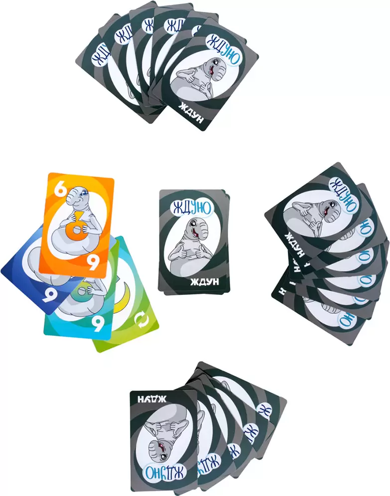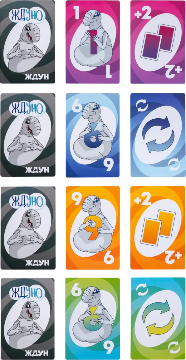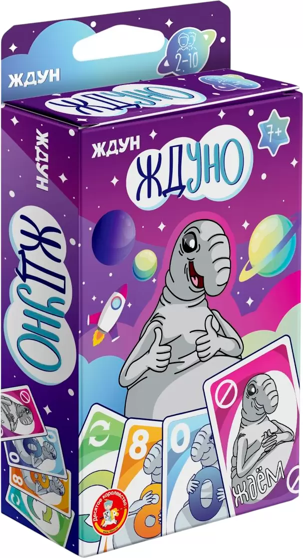 Настольная игра для большой компании «Ждуно» — это увлекательная игра с изображением узнаваемого персонажа, для большой компании от 2 до 10 игроков. Она упакована в удобную коробку 8,5х12,5 см, и не занимает много места.