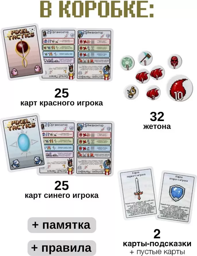 Информация о характеристиках, комплекте поставки и внешнем виде товара является справочной и получена из открытых источников (официальные сайты и каталоги производителей). Перед покупкой уточняйте у продавца интересующие Вас параметры и актуальную цену на Настольная игра GaGa Games Пиксель Тактикс. Легенды (Pixel Tactics. Legends).
