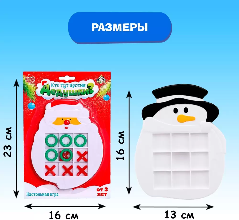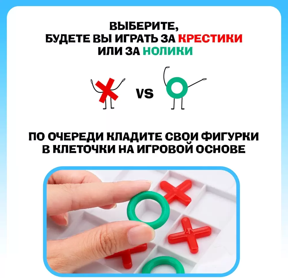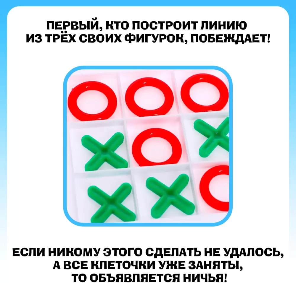Эта знаменитая детская игра на логику, которая знакома каждому. Как играть? Соберите ряд крестиков или ноликов по горизонтали, вертикали или диагонали и победа в ваших руках.Настольная игра «Кто тут против дедушки?» компактна и удобна для развлечения в любом месте. Она развивает смекалку, внимание и моторику. Устраивайте соревнования, и пусть победит сильнейший.