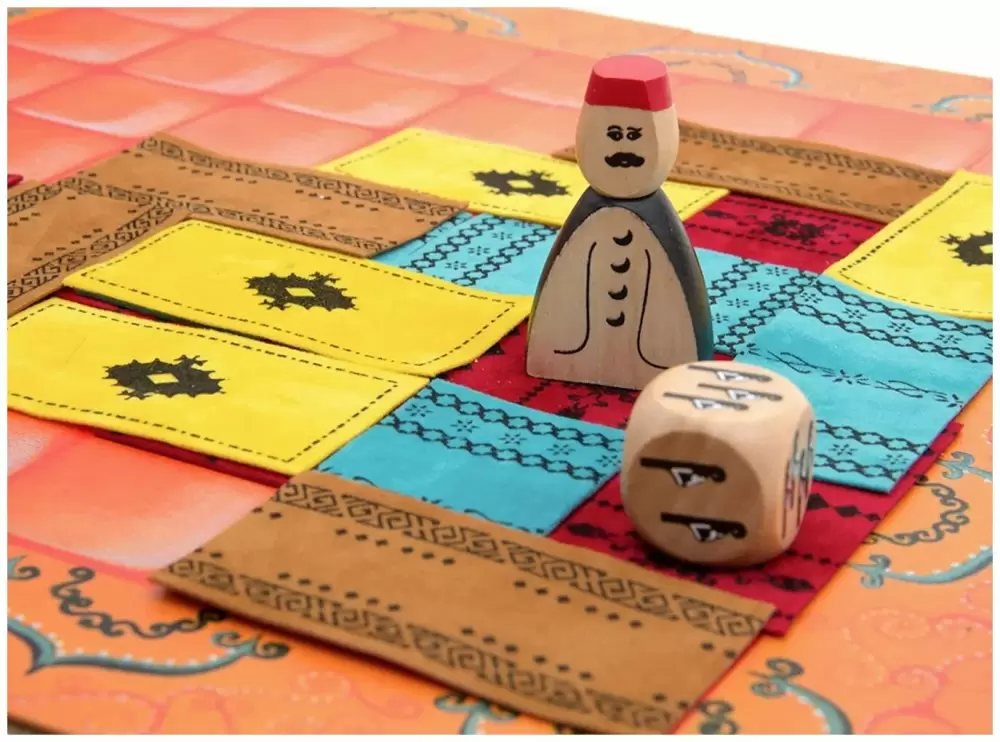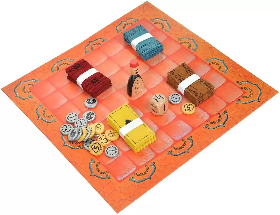 Ковровый рынок Марракеш бурлит: вот-вот будет объявлен лучший продавец. Каждый игрок стремится добиться того, чтобы в конце игры было видно максимальное количество его ковров, и в то же самое время старается получить наибольшую прибыль. По окончании игры побеждает самый состоятельный игрок (это определяется суммированием видимых ковров игрока и его накопленных денег).В составе настольной игры Марракеш: рыночная площадь, 57 матерчатых ковров, 40 монет, Ассам – хозяин рынка..