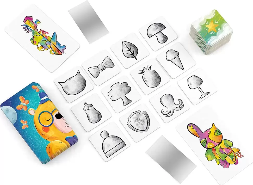 Кто прячется на этих причудливых картинках? Не лев ли там затаился? Или же это застенчивый заяц? А может и тот и другой? Узнайте, что скрывается по ту сторону зеркала! Превращайте половинки в целое с помощью зеркальных карточек: округлая линия при ближайшем рассмотрении оказывается спелым баклажаном, а причудливая закорючка — раскидистой пальмой. Соревнуйтесь друг с другом или играйте в командах, а победит тот, кто первым найдет 10 предметов!