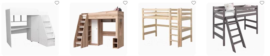 Двухъярусные кровати со встроенной лестницей-ящиком служит и доступом на второй ярус, и местом для хранения постельного белья. А кровати-чердаки освобождают полноценное пространство под рабочее место в маленьких детских комнатах.