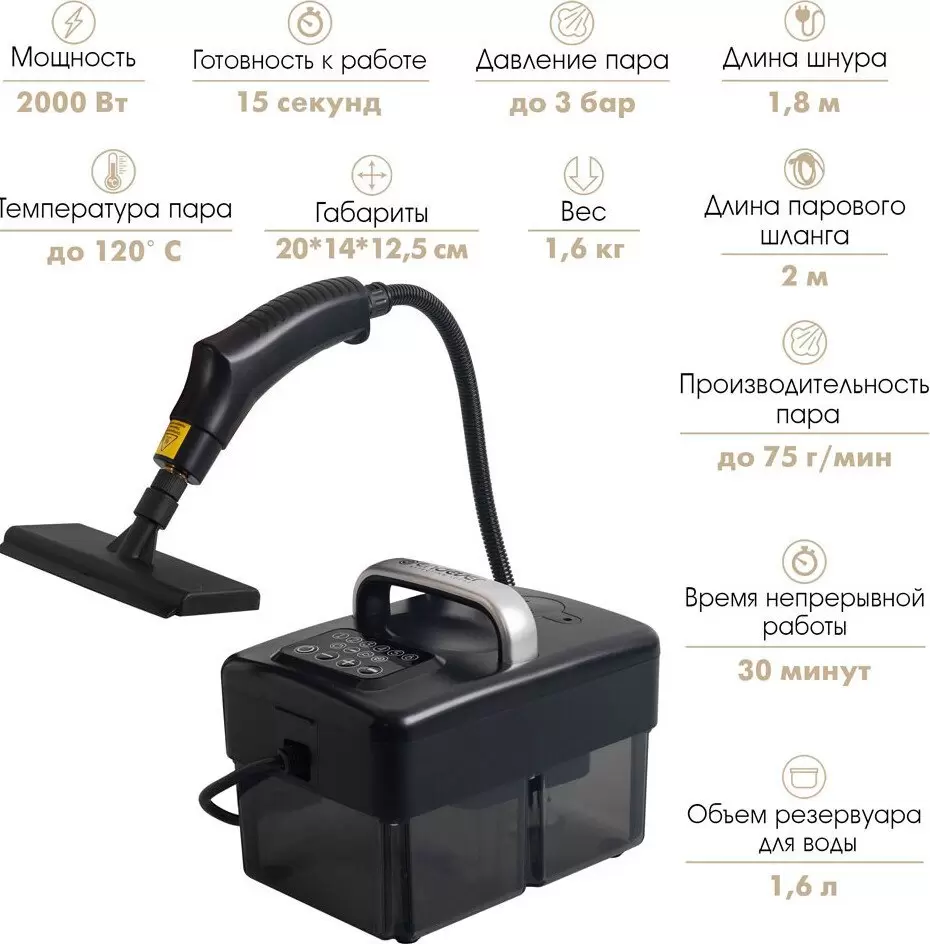 | Максимальный выход пара, г/мин | 75 |