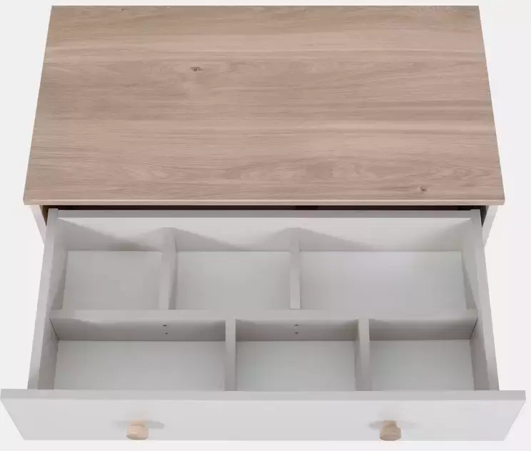Во-вторых, фасады ящиков отличаются по цвету. Такое ощущение, что два фасада покрасили на один раз меньше, чем другие.