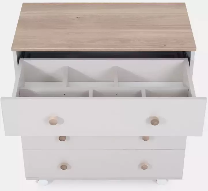 На уровне пеленального столика имеется туалетная полочка с тремя отделениями. Очень удобно для хранения мелких прибамбасов (крем, мыло, расческа, ножнички, салфетки и др)