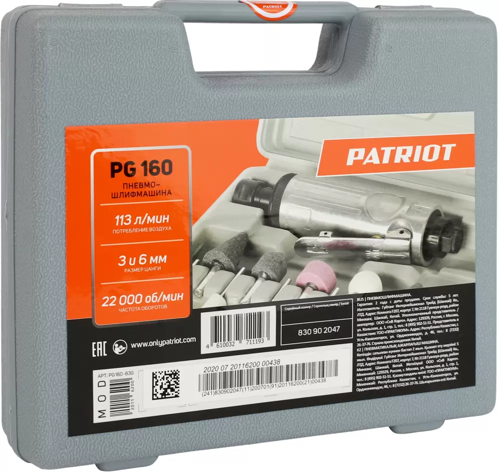 Информация о характеристиках, комплекте поставки и внешнем виде товара является справочной и получена из открытых источников (официальные сайты и каталоги производителей). Перед покупкой уточняйте у продавца интересующие Вас параметры и актуальную цену на Пневмошлифмашина Patriot PG 160.