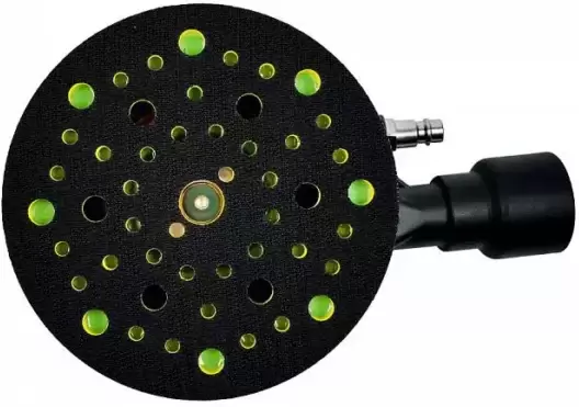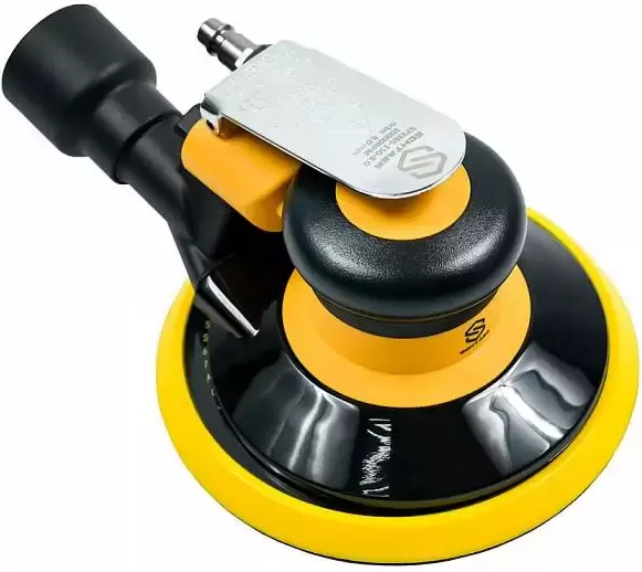 Пневмошлифмашина эксцентриковая (орбитальная). Максимальное число оборотов в мин 12000. Средний расход воздуха 420 л/мин. Диаметр шлифовального диска 150 мм. Ход эксцентрика 8 мм.