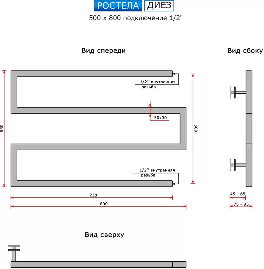 Полотенцесушитель Ростела Диез 50x80 см