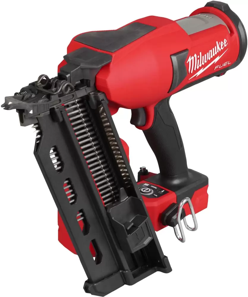 Аккумуляторный гвоздезабиватель. Стреляет дуплексными гвоздями MILWAUKEE® 21° 3,3 мм x 73 мм и 3,3 мм x 92 мм. Емкость магазина 44 шт. Диметр шляпки 3,3 мм.