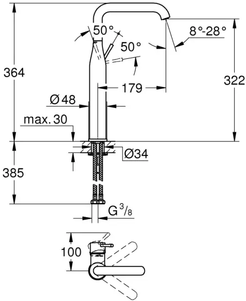 | Высота излива, см | 32.2 |
