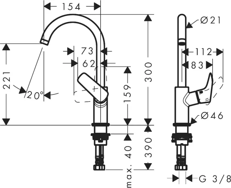 | Длина излива, см | 15.4 |