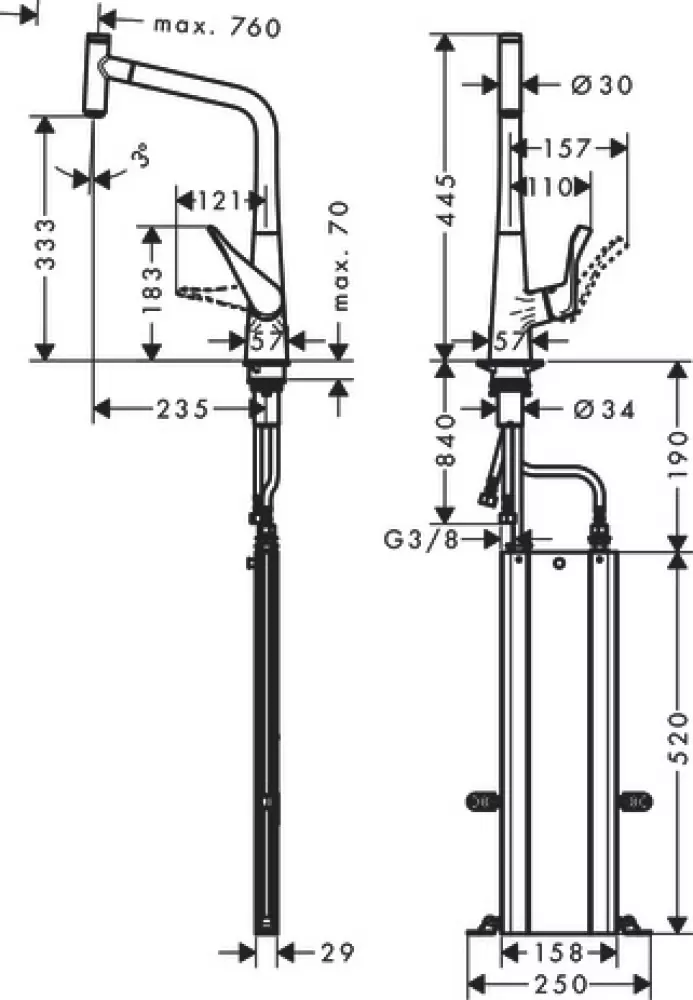 | Высота излива, см | 33.3 |