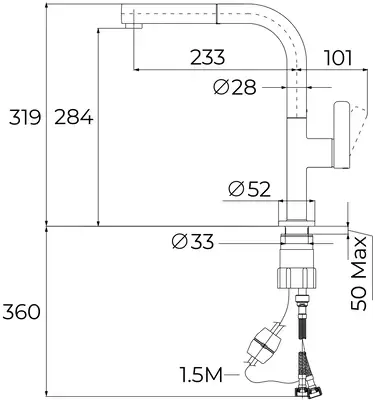 | Высота излива, см | 28.4 |