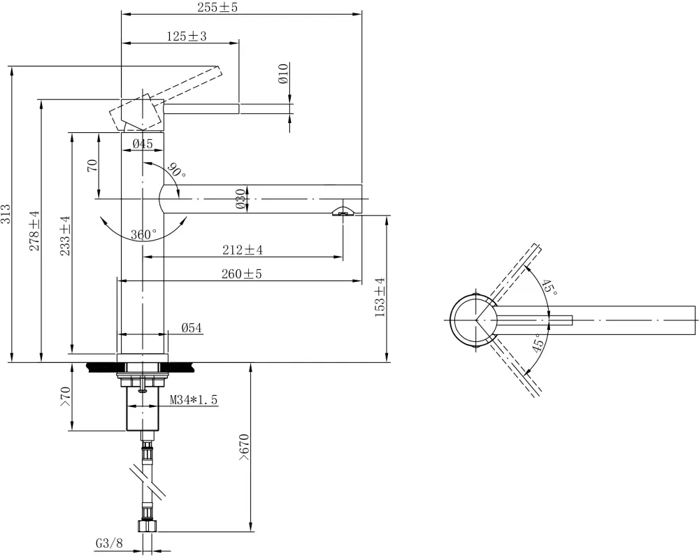 | Стандарт подводки | 3/8” |