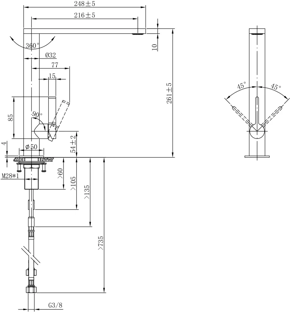 | Стандарт подводки | 3/8” |