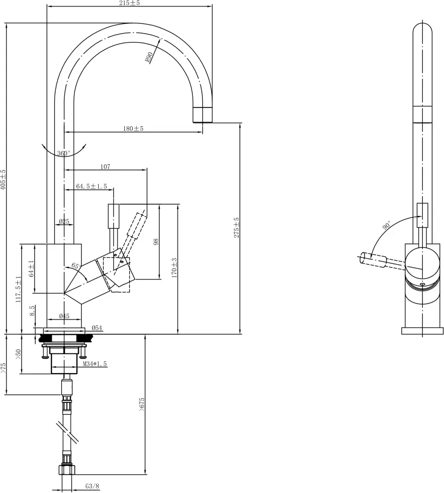| Стандарт подводки | 3/8” |