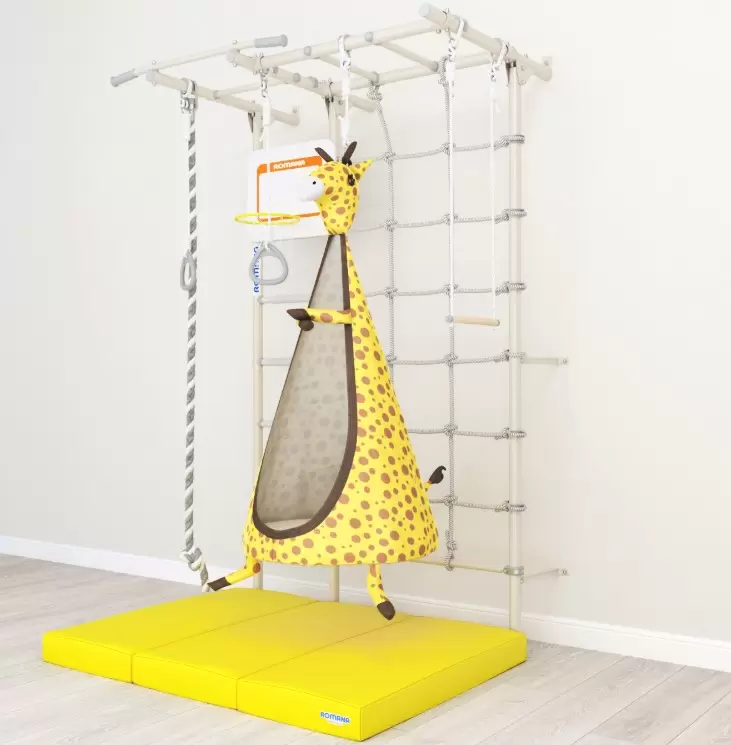 | Комплектация | Турник; Канат; Качели; Кольца; Сетка; Трапеция; Баскетбольный щит; Рукоход |