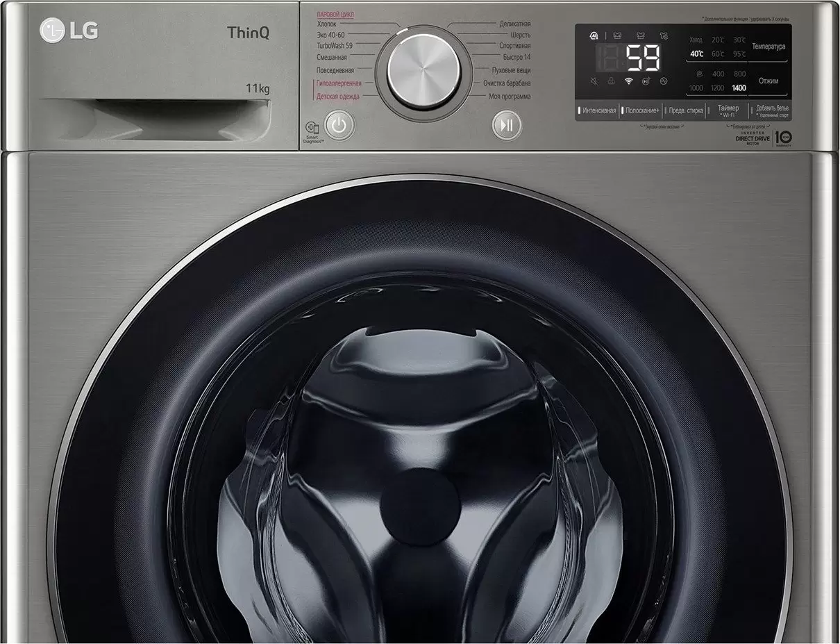 Выбор скорости отжима; Звуковой сигнал; Индикация ошибок; Интеграция в "умный дом"; Обработка паром; Отложенный старт; Отмена отжима |