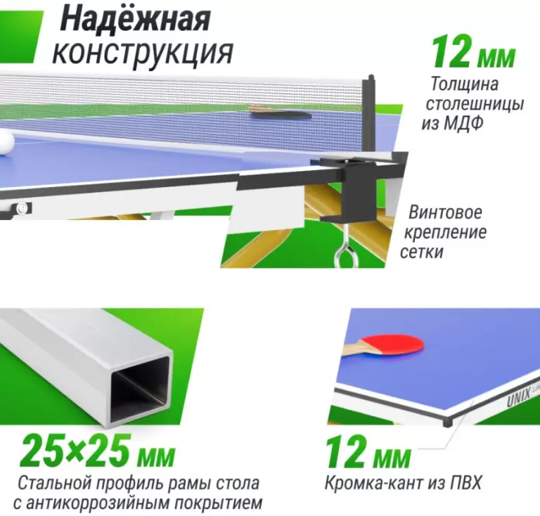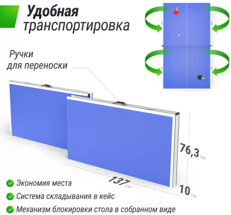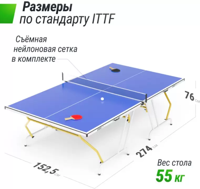| Дополнительно | Транспортировочные колеса; Сетка; Ракетки; Мячики |
