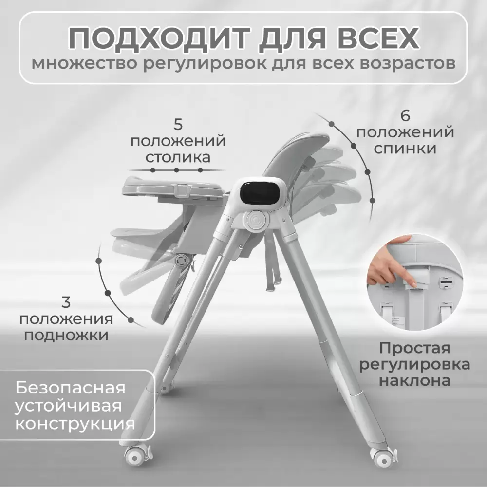 Высоты подножки; Высоты столика; Высоты сидения; Наклона спинки |