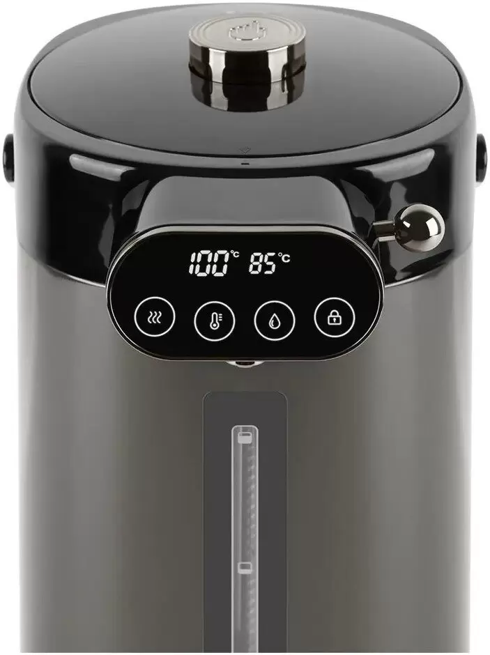 Код товара: 4092306. Фирменный ПОДАРОК при заказе через корзину сайта!стоимость товара на сайте указана с учетом скидки.информация о наличии и сроках доставки носит справочный характер.точную информацию уточняйте у менеджера. Тип: термопот Материал корпуса: металл Материал колбы: нержавеющая сталь Двойные стенки: Да Дорожный чайник: Нет Заваривание чая: Нет Заваривание кофе: Нет Мощность: 1400 Вт Объем: 4.5 л Цвет корпуса: черный Внешний уровень воды: Да спереди Длина сетевого шнура: 1.2 м Нагревательный элемент: закрытый Длина: 290 мм Ширина: 215 мм Высота: 350 мм Вес: 2320 г Способы розлива воды: электрический насос Поддержание температуры: Да Длительное кипячение: Да Терморегулятор: Да 6 режимов: 45°C, 55°C, 65°C, 75°C, 85°C, 95°C Индикация температуры: Да Управление: сенсорное Управление со смартфона: Нет Интеграция в умный дом: Нет Чашки: Нет