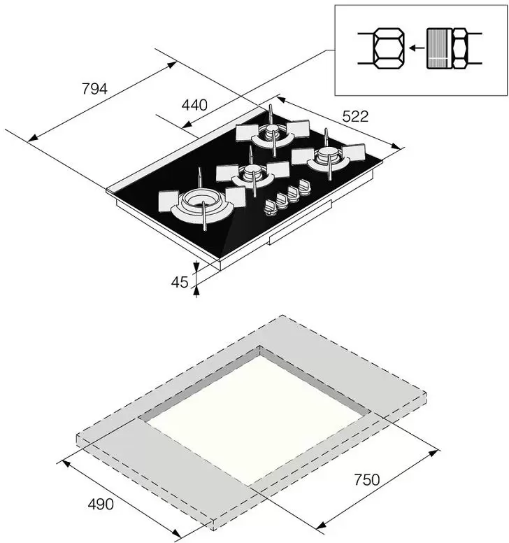 | Высота встраивания, см | 5 |