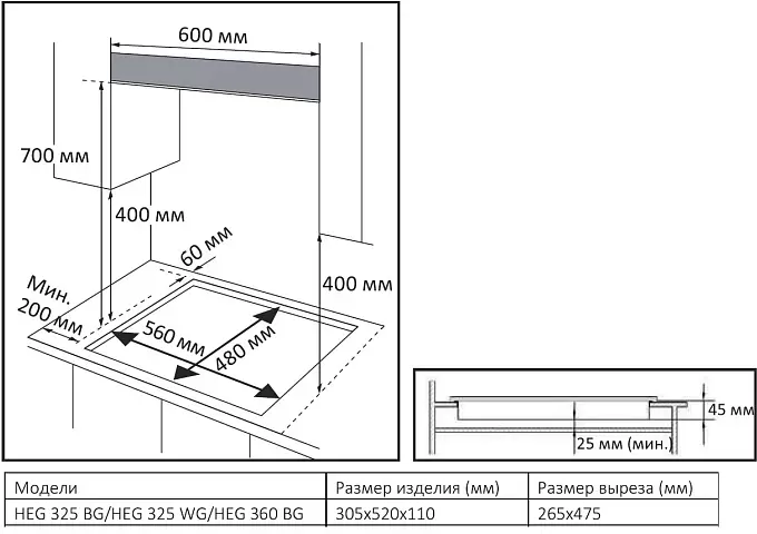 • Ширина встраивания: 26.5 см